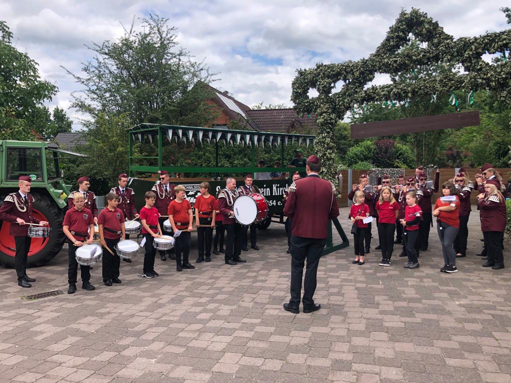 Gottesdienst unter freiem Himmel mit musikalischer Begleitung von Spielmannszug und Posaunenchor